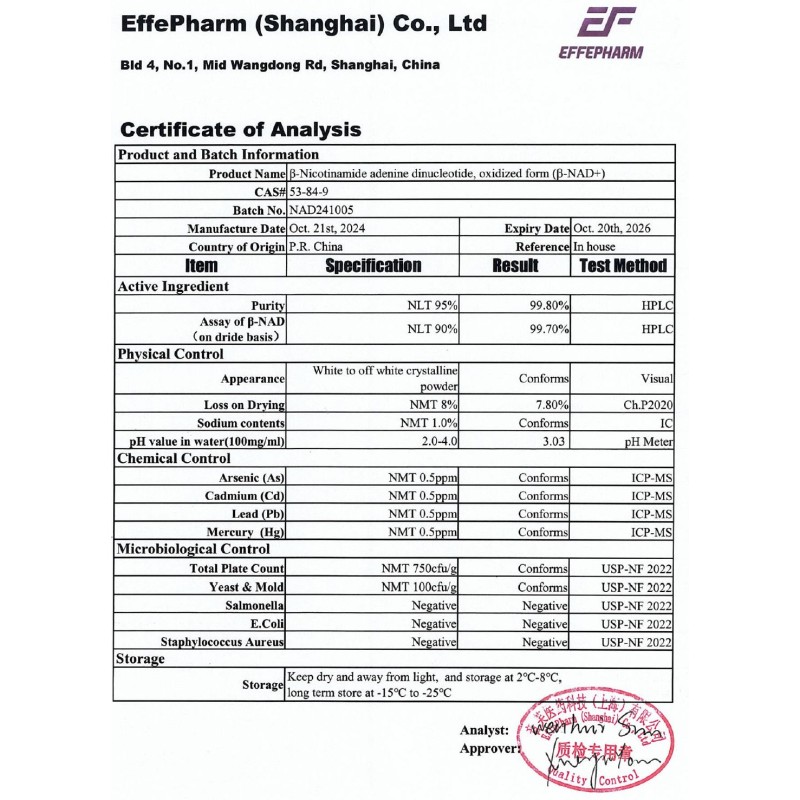 ✔️ Producent surowca: EffePharm – światowy lider i pionier w badaniach klinicznych nad NAD+