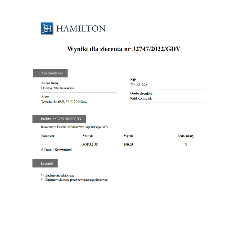 Nasze NR pochodzi od światowego lidera branży, a nasz Resweratrol standaryzowany jest na 98%, czyli zawiera 490 mg substancji aktywnej - trans-resweratrolu, blisko 10x więcej niż inne produkty. Nie wierzysz? Porównaj składy.