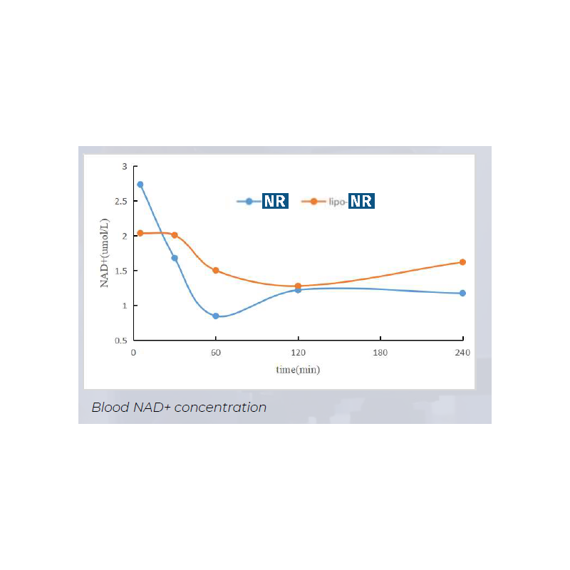 Wyższa wchłanialność ma bezpośrednie przełożenie na wyższe poziomy stężenia NAD+, aż o blisko x1.4 - to twierdzenie zostało poparte badaniami klinicznymi przeprowadzonymi przez badaczy firmy EffePharm.