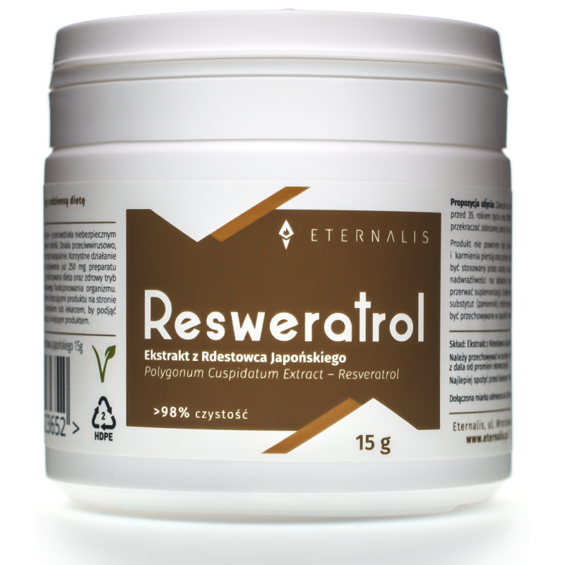 Resweratrol to związek z grupy stilbenoidów, naturalnie występujący w rdestowcu japońskim (Polygonum cuspidatum), skórkach winogron, kakao i jagodach. W suplementach występuje w dwóch formach: trans- i cis-, z czego trans-resweratrol wykazuje znacznie wyższą aktywność biologiczną oraz większą stabilność chemiczną.