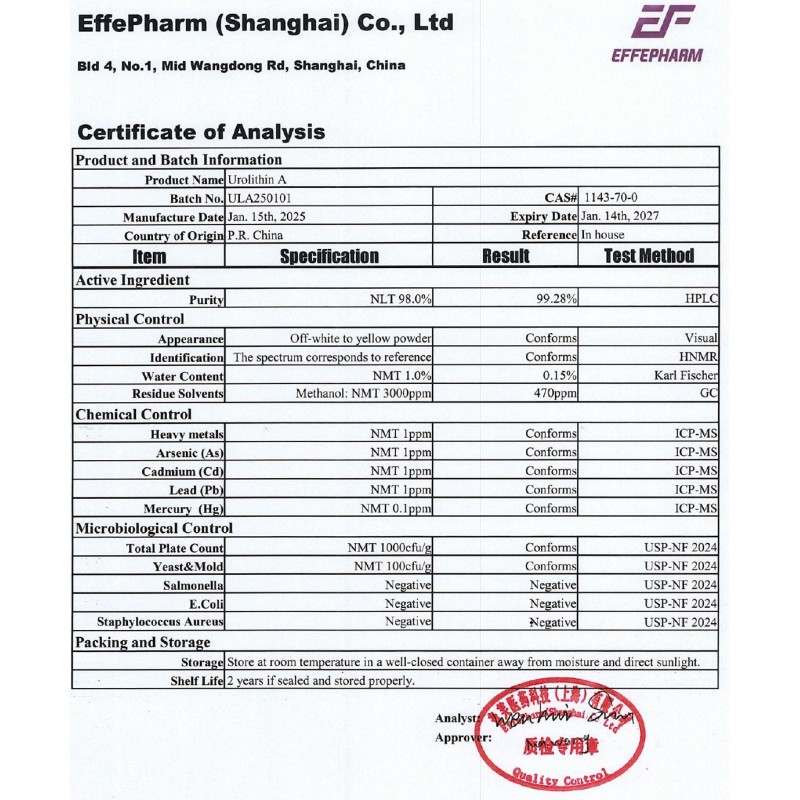 Maksymalne stężenie - aż 500mg sprawdzonego produktu UROLITYNA A czystość >99,5% od światowego lidera w branży EffePharm, w jednej kapsułce.